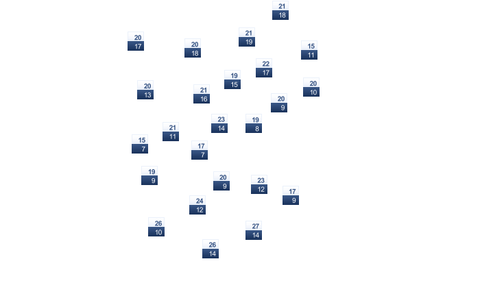 14 | 16 | 19 | 23 | 28 | 32 | 34 | 35 | 33 | 29 | 23 | 17 |
