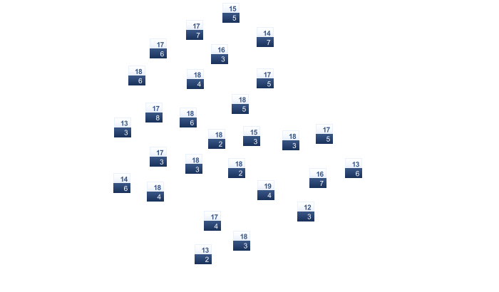 | 14 | 16 | 19 | 23 | 28 | 32 | 34 | 35 | 33 | 29 | 23 | 17 |
