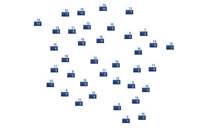 | 5 | 6 | 8 | 11 | 15 | 19 | 22 | 22 | 19 | 15 | 10 | 6 |