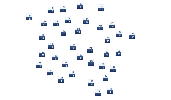 14 | 16 | 19 | 23 | 28 | 32 | 34 | 35 | 33 | 29 | 23 | 17 |