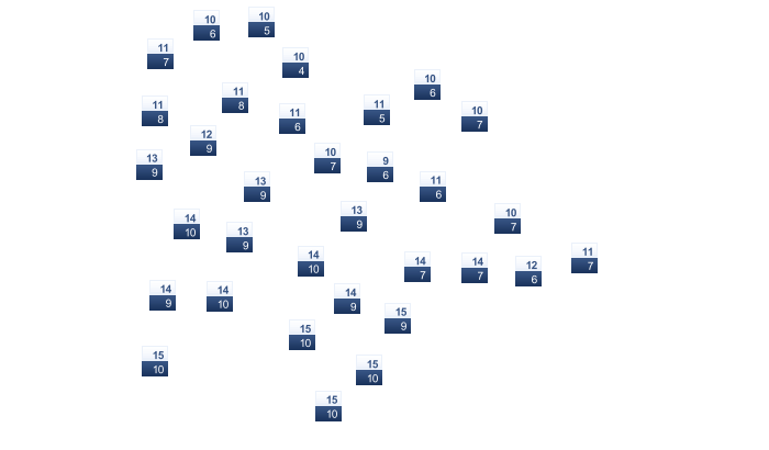 | 5 | 6 | 8 | 11 | 15 | 19 | 22 | 22 | 19 | 15 | 10 | 6 |