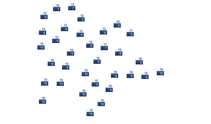 | 14 | 16 | 19 | 23 | 28 | 32 | 34 | 35 | 33 | 29 | 23 | 17 |