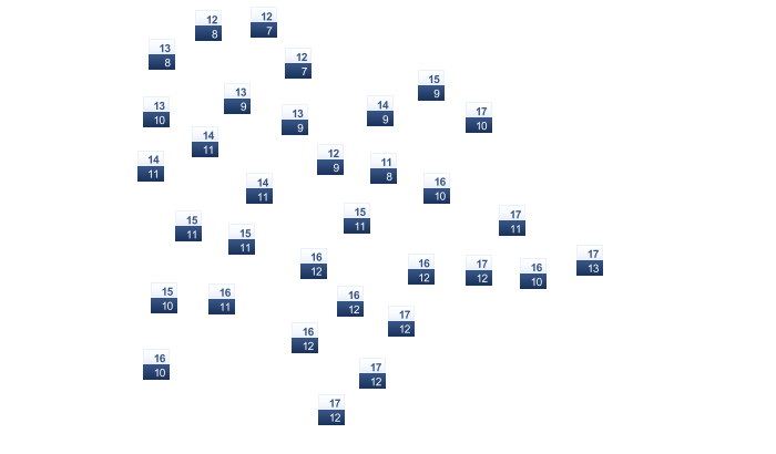 14 | 16 | 19 | 23 | 28 | 32 | 34 | 35 | 33 | 29 | 23 | 17 |
