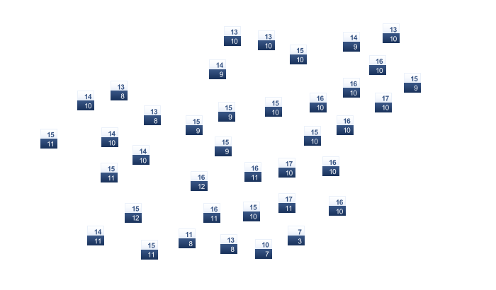 | 14 | 16 | 19 | 23 | 28 | 32 | 34 | 35 | 33 | 29 | 23 | 17 |