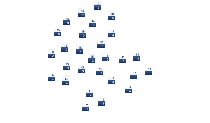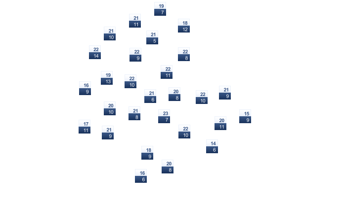 | 5 | 6 | 8 | 11 | 15 | 19 | 22 | 22 | 19 | 15 | 10 | 6 |