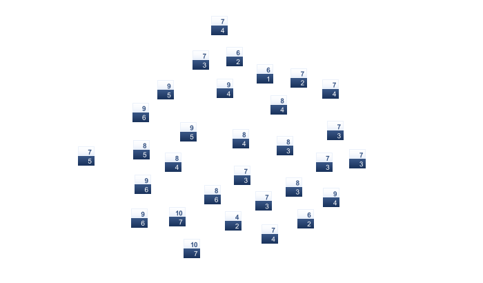 | 5 | 6 | 8 | 11 | 15 | 19 | 22 | 22 | 19 | 15 | 10 | 6 |