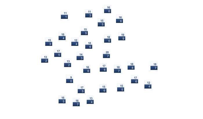 14 | 16 | 19 | 23 | 28 | 32 | 34 | 35 | 33 | 29 | 23 | 17 |