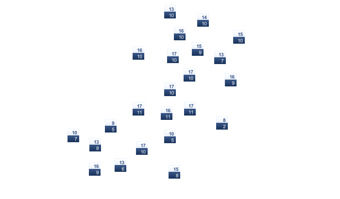 | 14 | 16 | 19 | 23 | 28 | 32 | 34 | 35 | 33 | 29 | 23 | 17 |