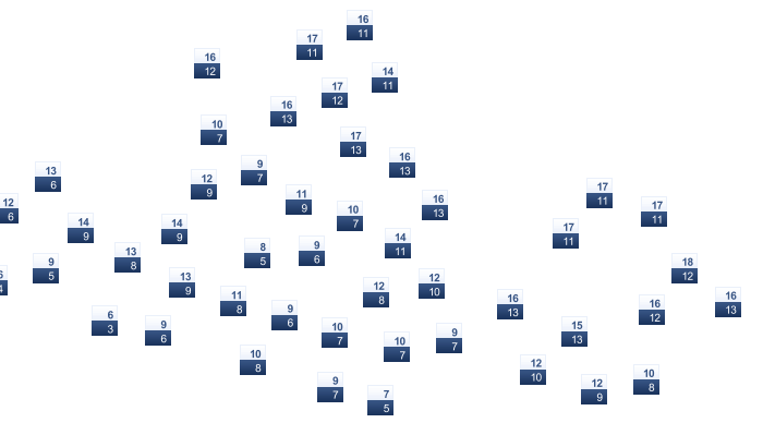 | 14 | 16 | 19 | 23 | 28 | 32 | 34 | 35 | 33 | 29 | 23 | 17 |