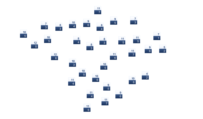 | 5 | 6 | 8 | 11 | 15 | 19 | 22 | 22 | 19 | 15 | 10 | 6 |