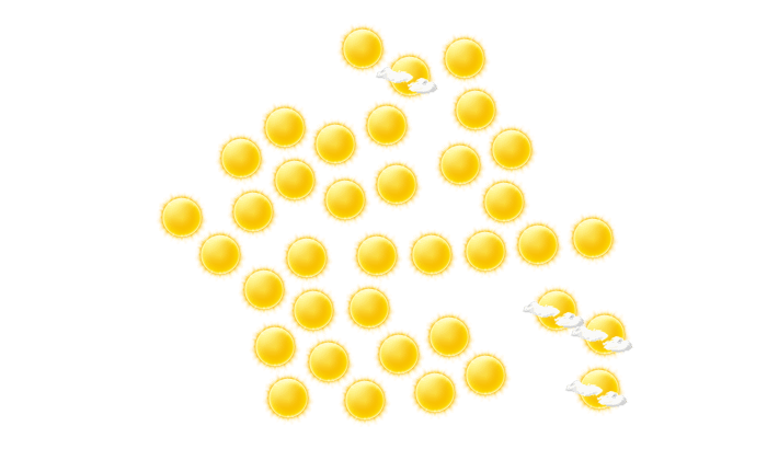 In Kebili stören am Morgen nur einzelne Wolken den sonst blauen Himmel bei Temperaturen von 13°C. Des Weiteren gibt es vom Nachmittag bis abends ungestörten Sonnenschein bei Temperaturen von 18 bis 23°C. In der Nacht ist es klar bei Tiefsttemperaturen von 14°C. Böen können Geschwindigkeiten zwischen 7 und 23 km/h erreichen.