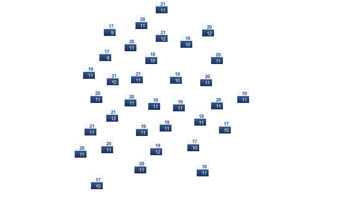 | 17 | 18 | 20 | 22 | 25 | 27 | 31 | 31 | 30 | 26 | 22 | 18 |