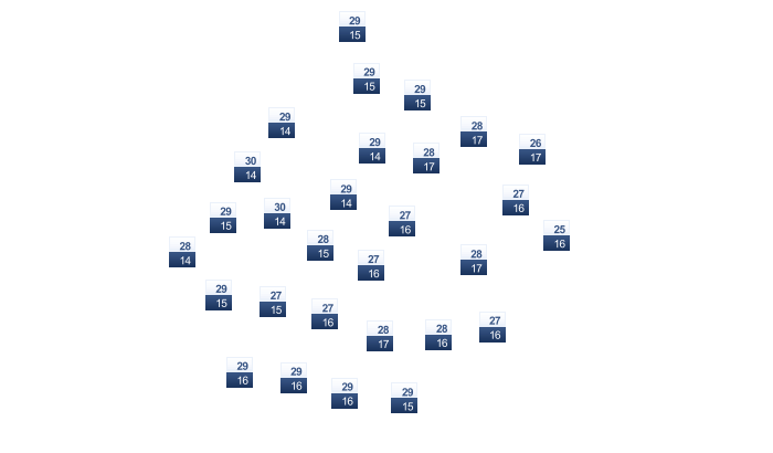 | 17 | 18 | 20 | 22 | 25 | 27 | 31 | 31 | 30 | 26 | 22 | 18 |