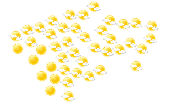 In Les Andalous kommt es den ganzen Tag zu einem Mix aus Sonne und Wolken bei Werten von 17 bis zu 19°C. Nachts bilden sich leichte Wolken und die Werte gehen auf 16°C zurück. Mit Böen zwischen 34 und 35 km/h ist zu rechnen.