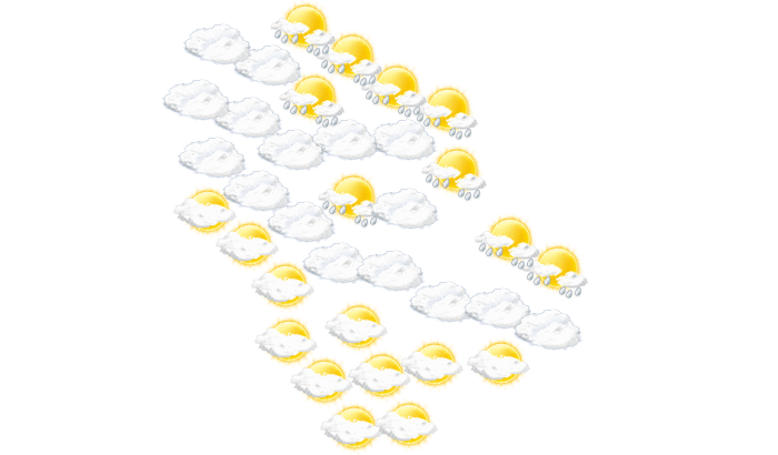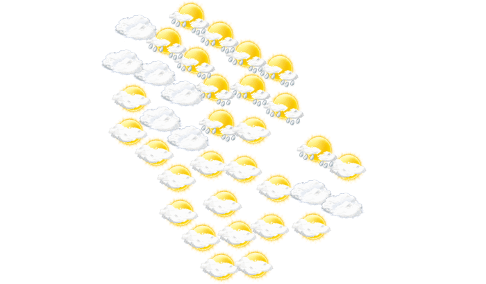 In Bou Attouche kann sich morgens die Sonne nicht durchsetzen und es bleibt bedeckt bei Temperaturen von 15°C. Am Mittag kann es immer mal wieder regnen und die Temperatur erreicht 18°C. Abends ist in Bou Attouche der Himmel bedeckt und die Werte gehen auf 14 bis 15°C zurück. In der Nacht bleibt die Wolkendecke geschlossen bei Tiefstwerten von 14°C. Mit Böen zwischen 33 und 39 km/h ist zu rechnen.