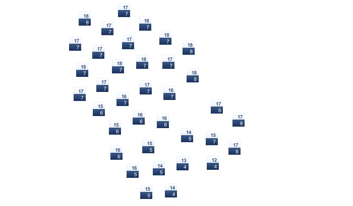 | 17 | 18 | 20 | 22 | 25 | 27 | 31 | 31 | 30 | 26 | 22 | 18 |