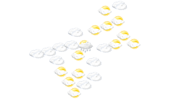 In Manouba wechseln sich morgens Wolken und Sonne ab bei Temperaturen von 7°C. Des Weiteren fällt mittags und auch abends Regen bei Werten von 10 bis zu 18°C. Nachts ist es wolkig bei Tiefsttemperaturen von 9°C. Mit Böen zwischen 26 und 35 km/h ist zu rechnen.