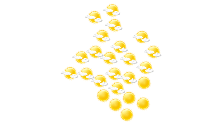 In Sidi Bouzid ist es morgens vielfach wolkig, gebietsweise kann sich auch die Sonne durchsetzen bei Werten von 15°C. Im weiteren Tagesverlauf zeigt sich die Sonne zwischen einzelnen Wolken und die Höchstwerte liegen bei 30°C. Am Abend bleibt in Sidi Bouzid die Wolkendecke geschlossen bei Werten von 22 bis zu 25°C. In der Nacht bilden sich leichte Wolken bei einer Temperatur von 16°C. Mit Geschwindigkeiten von 3 bis 13 km/h weht der Wind aus nördlicher bis westlicher Richtung. Böen können Geschwindigkeiten zwischen 9 und 59 km/h erreichen.