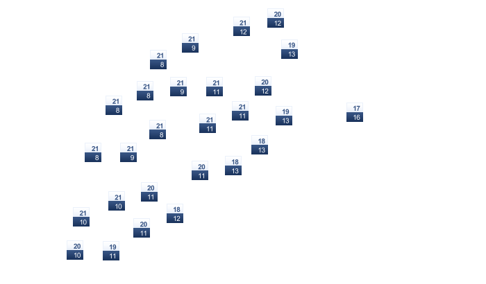 | 17 | 18 | 20 | 22 | 25 | 27 | 31 | 31 | 30 | 26 | 22 | 18 |