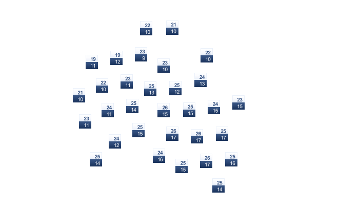 | 7 | 10 | 16 | 24 | 30 | 36 | 38 | 37 | 32 | 23 | 17 | 10 |
