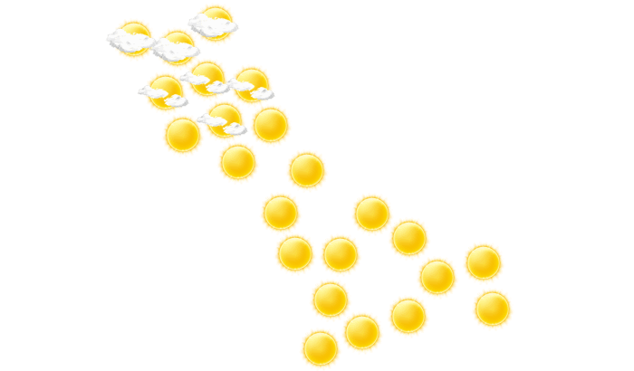 In Kerki strahlt am Tag die Sonne bei Temperaturen von 8 bis 22°C. In der Nacht gibt es einen wolkenlosen Himmel bei Werten von 9°C.