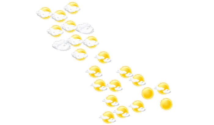 In Gowurdak scheint am Morgen die Sonne bei blauem Himmel bei Werten von 6°C. Im weiteren Tagesverlauf gibt es am Nachmittag und am Abend überwiegend blauen Himmel mit vereinzelten Wolken und die Temperaturen liegen zwischen 9 und 17 Grad. Nachts gibt es einen wolkenlosen Himmel und das Thermometer fällt auf 5°C.