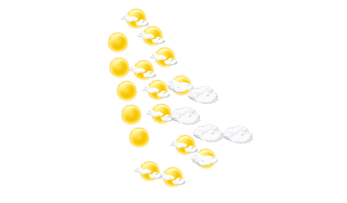 In Yolöten wird bis zum Nachmittag die Sonne von einzelnen Wolken verdeckt und die Temperaturen liegen zwischen 12 und 23°C. Am Abend gibt es in Yolöten keine Wolken bei Werten von 17 bis zu 21°C. Nachts ist es wolkenlos bei einer Temperatur von 13°C. Mit Böen zwischen 9 und 19 km/h ist zu rechnen.