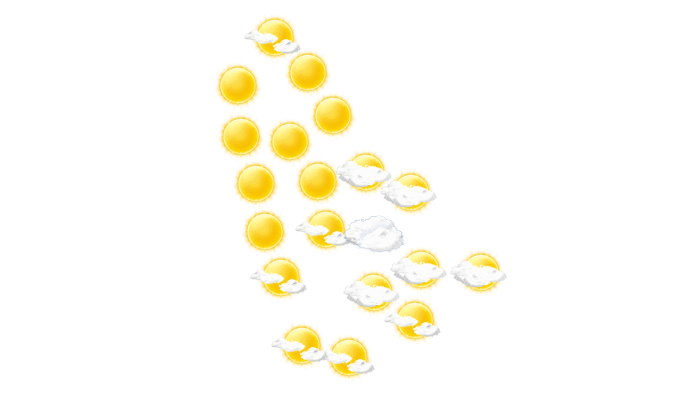 In Mary gibt es morgens lockere Bewölkung bei Temperaturen von 14°C. Im weiteren Tagesverlauf gibt es vom Nachmittag bis abends strahlenden Sonnenschein und die Temperaturen liegen zwischen 20 und 30 Grad. Nachts verdecken einzelne Wolken den Himmel bei Tiefsttemperaturen von 15°C. Mit Böen zwischen 20 und 30 km/h ist zu rechnen.