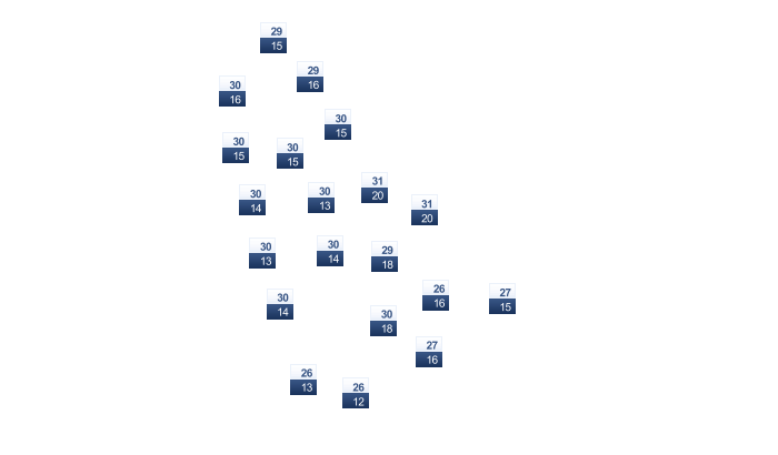 | 7 | 10 | 16 | 24 | 30 | 36 | 38 | 37 | 32 | 23 | 17 | 10 |