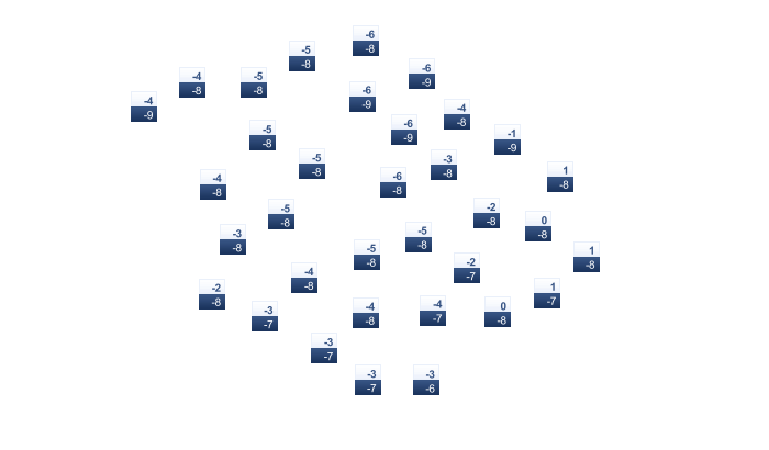 | -5 | -3 | 2 | 14 | 22 | 25 | 27 | 26 | 21 | 13 | 5 | -1 |