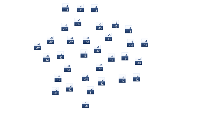 | -5 | -3 | 2 | 14 | 22 | 25 | 27 | 26 | 21 | 13 | 5 | -1 |