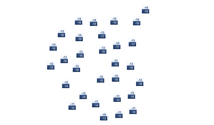 | -5 | -3 | 2 | 14 | 22 | 25 | 27 | 26 | 21 | 13 | 5 | -1 |