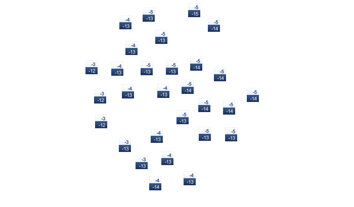 | -5 | -3 | 2 | 14 | 22 | 25 | 27 | 26 | 21 | 13 | 5 | -1 |