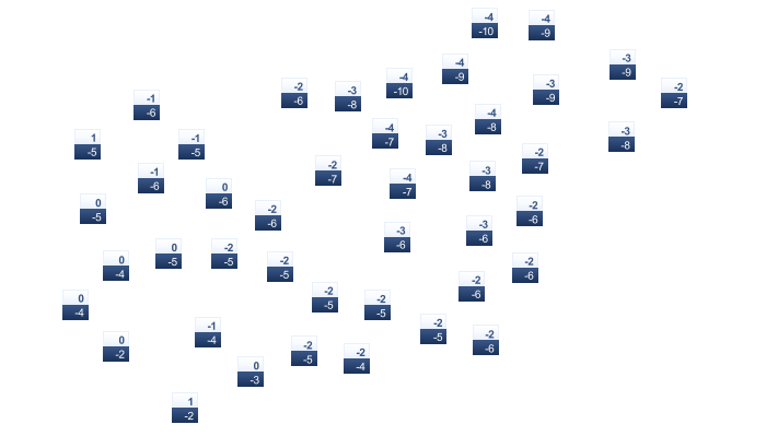 | -2 | 1 | 3 | 8 | 12 | 17 | 19 | 19 | 15 | 9 | 5 | 1 |