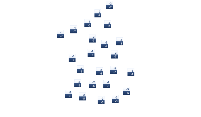 | -2 | 1 | 3 | 8 | 12 | 17 | 19 | 19 | 15 | 9 | 5 | 1 |