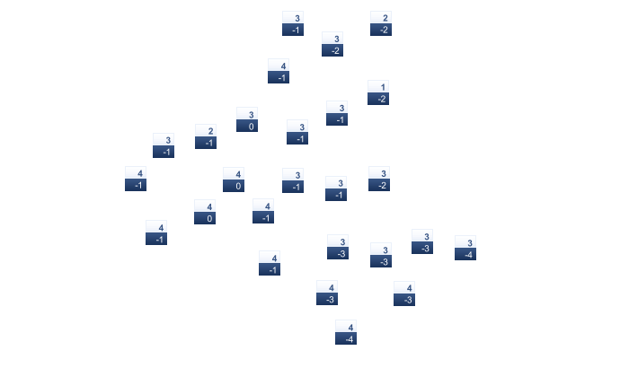 | -2 | 1 | 3 | 8 | 12 | 17 | 19 | 19 | 15 | 9 | 5 | 1 |