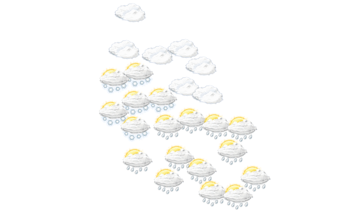 In Getterle ist es morgens bedeckt und die Temperatur liegt bei 2°C. Mittags fällt Schnee bei Höchstwerten von 4°C. Abends bleibt in Getterle die Wolkendecke geschlossen und die Temperatur liegt bei 2°C. Nachts überwiegt dichte Bewölkung, aber es bleibt trocken und die Werte gehen auf 0°C zurück. Böen können Geschwindigkeiten zwischen 16 und 33 km/h erreichen.