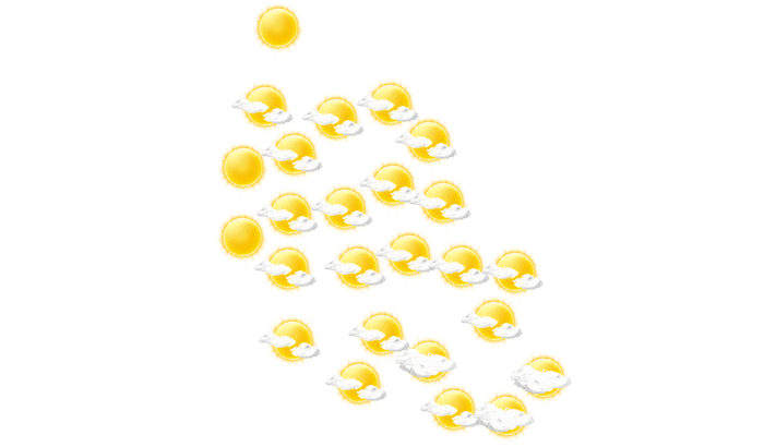 In Getterle scheint morgens die Sonne bei blauem Himmel und die Temperatur liegt bei 1°C. Des Weiteren gibt es von mittags bis zum Abend hin überwiegend blauen Himmel mit vereinzelten Wolken bei Werten von 6 bis zu 13°C. Nachts ziehen Wolkenfelder durch bei Tiefsttemperaturen von 2°C. Mit Böen zwischen 29 und 34 km/h ist zu rechnen.