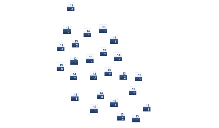 | -2 | 1 | 3 | 8 | 12 | 17 | 19 | 19 | 15 | 9 | 5 | 1 |