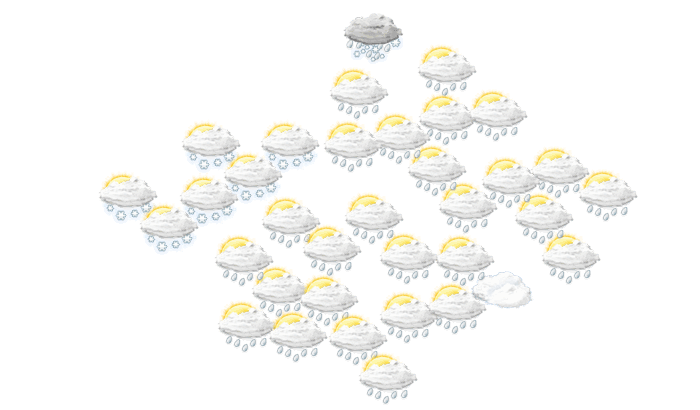 In Salka ist es am Morgen bedeckt und die Temperatur liegt bei -2°C. Darüber hinaus sind am Nachmittag und am Abend anhaltende Schauer zu erwarten bei Temperaturen von 2 bis 3°C. Nachts sind anhaltende Regen-Schauer zu erwarten bei Werten von 2°C. Mit Böen zwischen 19 und 27 km/h ist zu rechnen.