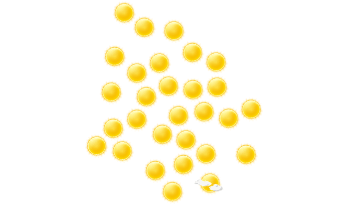 In Montevideo scheint den ganzen Tag die Sonne und die Temperaturen liegen zwischen 17 und 27°C. In der Nacht ist es wolkenlos bei Tiefsttemperaturen von 19°C.