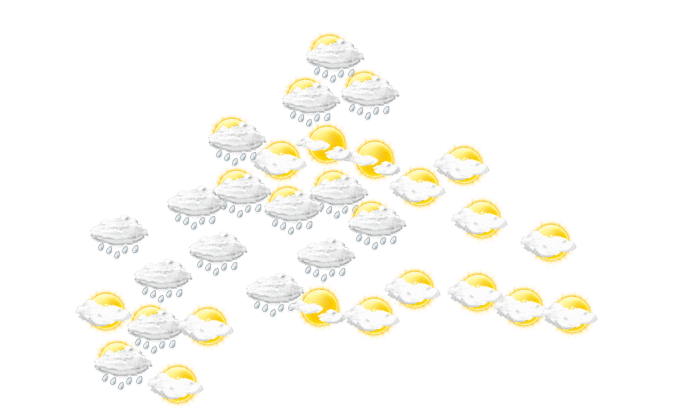 In Melo zeigt sich morgens die Sonne nur vereinzelt bei sonst wolkigem Himmel bei Werten von 13°C. Des Weiteren sollte von mittags bis zum Abend hin der Schirm nicht vergessen werden, da es regnet und die Temperaturen liegen zwischen 19 und 25 Grad. Nachts sind anhaltende Regen-Schauer zu erwarten bei Tiefsttemperaturen von 16°C.