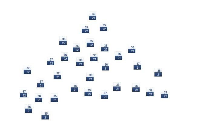 | 33 | 32 | 29 | 25 | 22 | 19 | 19 | 21 | 22 | 24 | 29 | 32 |