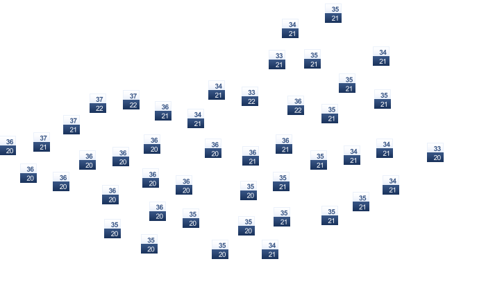 | 33 | 32 | 29 | 25 | 22 | 19 | 19 | 21 | 22 | 24 | 29 | 32 |