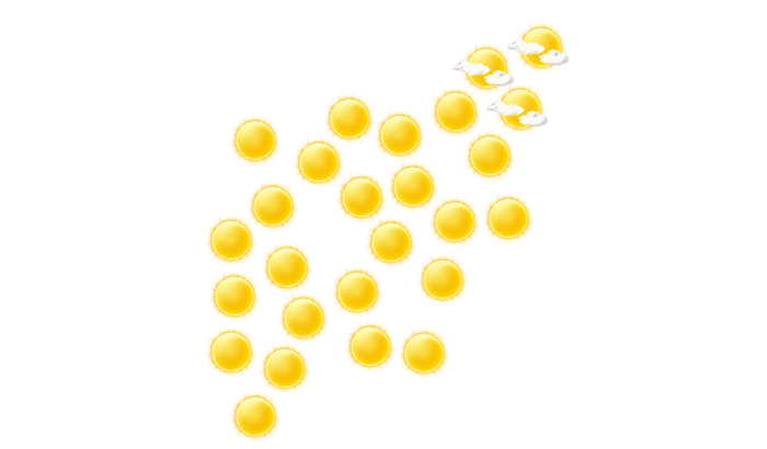 In Casupá ist es den ganzen Tag sonnig bei Temperaturen von 12 bis 28°C. In der Nacht bedecken einzelne Wolken den Himmel bei Tiefstwerten von 13°C.