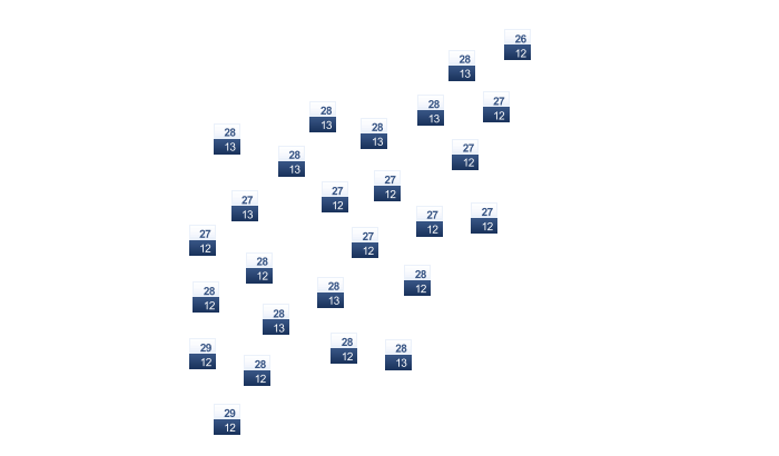 | 19 | 19 | 17 | 13 | 10 | 9 | 8 | 9 | 11 | 13 | 15 | 17 |