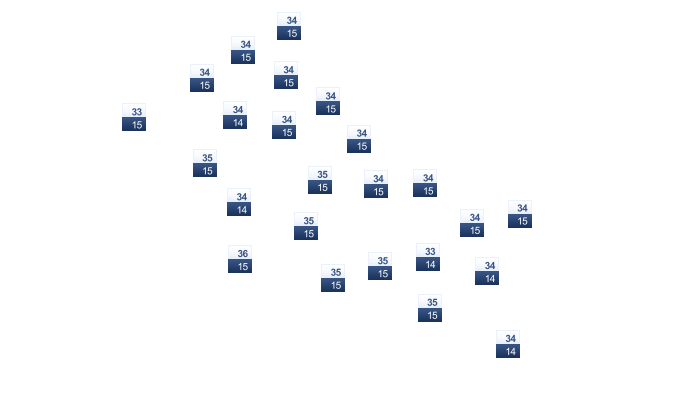 | 33 | 32 | 29 | 25 | 22 | 19 | 19 | 21 | 22 | 24 | 29 | 32 |