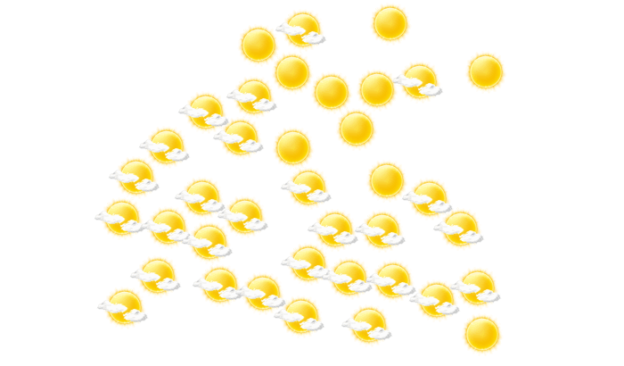 In Cardona scheint morgens die Sonne bei Werten von 12°C. Am Mittag wird die Sonne von einzelnen Wolken verdeckt bei Höchstwerten von 28°C. Am Abend ist es in Cardona überwiegend dicht bewölkt und die Temperaturen liegen zwischen 17 und 21 Grad. In der Nacht ist es wolkenlos bei Tiefstwerten von 13°C.