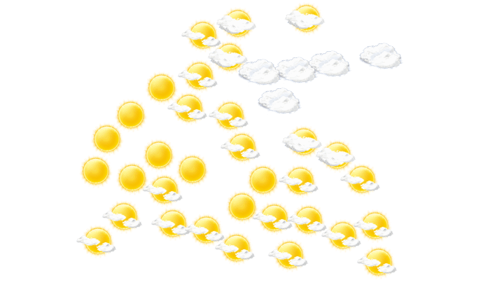 In Cardona bilden sich vormittags und auch am Nachmittag leichte Wolken bei Werten von 16 bis zu 28°C. Am Abend ist es in Cardona wolkenlos und die Temperaturen liegen zwischen 16 und 22 Grad. Nachts ist es klar bei Tiefsttemperaturen von 13°C.