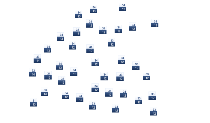 | 33 | 32 | 29 | 25 | 22 | 19 | 19 | 21 | 22 | 24 | 29 | 32 |